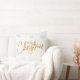Christmas themed cushion. Merry Christmas in Gold with colorful/colourful snowflake background. Great for the home and office.