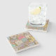 The coasters are gorgeous, a quality feel and heavy weight. They look like a precious archeological find. A rustic stone juxtaposed with a modern floral black and white print. I like the way the print goes slightly imperfect on the cut stone edges giving them a kind-of natural beauty.