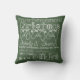 Christmas Time Chalkboard Look pillow with various styles of fonts in white on a chalkboard green background. Christmas tree lights, mittens on a string, ornaments, hearts and scrolls, and text that reads "Christmas Family & Friends laughter and smiles...sharing and caring, mistletoe & fudge, smell of pine...gifts to give, Birth of CHRIST!".