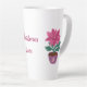 Pink purple poinsettia flower in snowflake decorated pot and text sayin Christmas time.