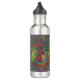 This awesome water bottle features a fun festive photograph of some peacock feathers taken using macro photography. Artificial colouring techniques have been used to emphasize the detail. The result is a purple tinsel effect with the eyespots showing shades of red and green.