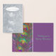 This awesome sleek foil card features a fun festive photograph of some peacock feathers taken using macro photography. Artificial colouring techniques have been used to emphasize the detail. The result is a purple tinsel effect with the eyespots showing shades of red and green.
