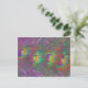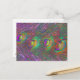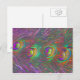 This cute postcard features a fun festive photograph of some peacock feathers taken using macro photography. Artificial colouring techniques have been used to emphasize the detail. The result is a purple tinsel effect with the eyespots showing shades of red and green.