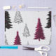 This pattern is based on a Christmas theme and features a repeating arrangement of fir trees of different sizes and colours. Some are adorned with star toppers and small circular ornaments to add to the festive atmosphere. The pattern is evenly spaced, giving it a clean, modern feel.