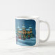 a festive drinking mug for the whole family featuring a snowy town squaire on christmas eve. lovely winter holiday souvenir with an exclusive design by frank glerum art.