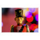 Christmas toy soldier figurine SlipperyJoe gay pride gifts LGBTQIA colourful bokeh lights background vibrant coloured red jacket uniform gold buttons shoulder epaulets cartoonish face artistic black hat gold eagle emblem pink purple yellow red festive atmosphere