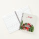 Spiral notebook with a cute and whimsical Christmas theme. A cosy trailer decorated for Christmas set among some pine trees.