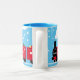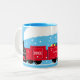 Personalized Christmas train gift mug in red and blue.