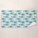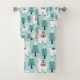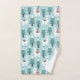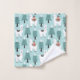Cute cartoon llama with snowy christmas tree and gift boxes on turquoise background