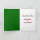 Pretty green Christmas tree with look of brown burlap bag decorated with look of colorful 3D ornaments and lights, candy canes and a big gingerbread man with yellow star on top. INSIDE of card has special message. Small Christmas and Peace on Earth typography on backside. Original Artwork and Card Verse © 2013 TamiraZDesigns.