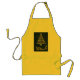 A bright yellow apron for Christmas with a gold and silver Christmas Tree on a black background from a handpainted gouache design by Judy Adamson. Greeting cards and postage with this design are also available.