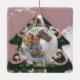 Christmas Tree Artistic Green Pink Family Photo Ceramic Ornament