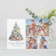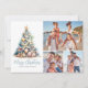 Elegant Personalised Watercolor Christmas Tree Beach Photo Holiday Card Seashell Starfish Coral. Spread holiday cheer with a beachy twist on this horizontal Christmas card, featuring spaces for three family photos to make it uniquely yours. Perfect for anyone who loves the ocean or lives in tropical spots like Florida, Hawaii, or the Bahamas, this design showcases a charming Christmas tree made of shells, starfish, and coral in serene teal and blue hues. The watercolor tree sits on a sandy base, topped with a starfish for a coastal holiday touch. Simple fonts mixed with script typography add a casual, elegant feel to your holiday message. Available as a printed card or a downloadable digital file for emailing or local printing, it’s a wonderful way to bring surf and sand to your holiday greetings.