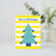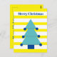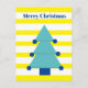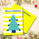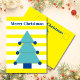 Change up your Christmas wishes with this modern striped Christmas design. Still using the traditional seasonal colours this design uses yellow and blue. The blue tree has decorations hanging of it.