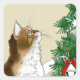Christmas Tree Calico Cat Ornaments Funny Square Sticker
