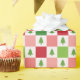 Red, Pink and green christmas tree chequered print wrapping paper.