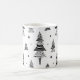 Pattern of various simple lagom fir trees with hatching and dots. Hand drawn Christmas trees. Festive ink texture