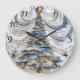 An intricate clock design adorned with Christmas elements captures the festive spirit. The clock features a beautifully crafted Christmas tree with detailed layers, embellished with gold accents.