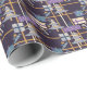 A colorful hand drawn Christmas themed pattern with christmas tree, presents and candies in a purple, blue cream color palette