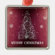 Christmas Tree Glitter and Snowflakes | Red Metal Ornament
