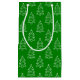 A gift bag built with a white Christmas tree pattern on a green background. Customize the green background color, pattern size among other options.