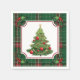 Beautiful Christmas paper napkins featuring a colorful Christmas tree with a Christmas green plaid border and holly accents. Great for holiday parties with matching paper plates.