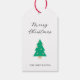 This product is a personalized white gift tag featuring a green Christmas tree with gold colored hearts and "Merry Christmas" in festive calligraphy. It would be searched for using terms like personalized Christmas gift tags, gift tag, holiday stationery, Merry Christmas tag, and traditional Christmas gift tag. The design fits into the art themes of Holiday/Seasonal and Stationery & Paper Goods, specifically featuring the classic Christmas motifs of pine trees and the Black and Green Color Palette in a traditional, high-quality style.