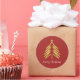 A whimsy Christmas tree design with faux foil effect and a festive red background.