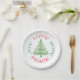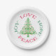 This is a pretty paper plate for versatile use during the Holiday Season. It features a decorative red and green art nouveau image of a Christmas tree in the middle. The tree is encircled by the text Love Hope Peace Joy in red and green. Wonderful for any seasonal party, church group, or gathering.