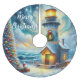Christmas Tree Lighthouse Nautical Coastal Blue Brushed Polyester Tree Skirt
