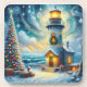 Christmas Tree Lighthouse Nautical Coastal Blue Coaster