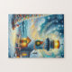 Christmas Tree Lighthouse Nautical Coastal Blue Jigsaw Puzzle