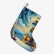 Christmas Tree Lighthouse Nautical Coastal Blue Small Christmas Stocking