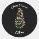 Christmas tree lights custom name classic round sticker