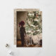 An illustration of a little boy in a Santa hat standing in awe of a beautiful Christmas tree and presents features a Believe greeting on the front and your personalised message and names on the back.