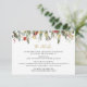 Pine greenery and glowing Christmas tree lights add a warm evergreen touch to this winter wedding details card. Use it to share accommodations, directions, transportation, registry information, or weekend schedule notes. All text fields are fully editable. Coordinates with the complete Christmas Tree Lights Pine wedding suite — invitations, RSVP cards, menus, programs, and signage.
