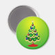 Cute little Christmas Tree magnet. The tree is decorated with bright glass ball ornaments and gold scalped garland and a Gold Star on top.