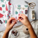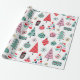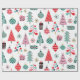 Blue, red and pink Christmas tree pattern wrapping paper.