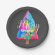 Colourful and cute modern Christmas design of modern watercolor christmas tree painted by artist Sacha Grossel. This funky blue and pink coloured tree on a grey background is arty and fun for a modern Christmas theme.
