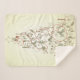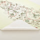 This blanket features a scrolling Christmas tree design with a star and ornaments in muted light green and pink with a beige background.