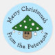 A cartoon mushroom with a green cap like a Christmas tree wishes a "Merry Christmush" from the family.