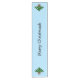 A festive table runner for mushroomy meals. The ends have a cartoon mushroom decorated like a Christmas tree. The middle has the punny message "Merry Christmush" on ice blue.
