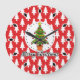 Christmas Tree on Red Pines Pattern - Merry Xmas Large Clock