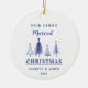 The design features an "our first married Christmas" script and a simple Christmas tree pattern and a photo on the backside. personalise with your family name.