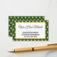 You can personalise black text with your name and new address. At the top, you can customise the elegant black script that says "We Have Moved". A faux gold bolder is around the text box. This green holiday moving announcement has a pattern of white Christmas trees on the front and back.