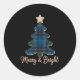 Christmas Tree Pattern Tartans Greens And Blue Pla Classic Round Sticker