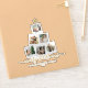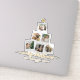 Personalised Christmas stickers featuring a Christmas tree shaped photo collage with 6 pictures alongside elegant minimalist typography in gold colour.