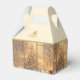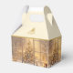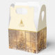 This favor gift box has a photo image reminiscent of a currier and Ives painting of a decorated Christmas tree in the window with plenty of snow around. Photo is on all four sides of this favor gift box, and the top has a printed-on gold color Christmas tree vector wishing your recipients a Merry Christmas over a champagne-blush background. Customize this item or buy as is.