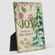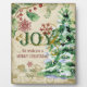 COLOR PALETTE: Tan, cream, green, red and gold. DESIGN COLLECTION: This is an original art design from Audrey Jeanne Roberts, made from hand painted water colour images of snowy pine trees with lights, pine cones with holly berry garland, holly branches with leaves, leaf swirls, red modern snowflakes and word art. This design has an inspirational sentiment that says, "Joy" and has green swirls accenting the text with a golden "glitter" effect. Perfect for Christmas decor as you can easily and safely pack them away after the holidays! Available in 3 versions: a non-personalised, a personalised version with your family name (or to personalise for a gift for another family) and as a photo frame to display your family photo. Use all 4 designs to display 4 different family photos over the years on your fireplace mantel!