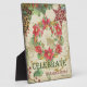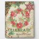 COLOR PALETTE: Tan, cream, green, red and gold. DESIGN COLLECTION: This is the personalised version with room for your family name or the name of a family or friend you would like to give this to as a Christmas gift! It is very easy to customise using the template field. This is an original art design from Audrey Jeanne Roberts, made from hand painted water colour images of a beautiful hand painted poinsettia Christmas wreath, holly berry garland, holly branches with leaves, pine cones, leaf swirls, red modern snowflakes and word art. This design has an inspirational sentiment that says, "Celebrate" and has green swirls accenting the text with a golden "glitter" effect. Perfect for Christmas decor as you can easily and safely pack them away after the holidays! Available in 3 versions: a non-personalised, a personalised version with your family name (or to personalise for a gift for another family) and as a photo frame to display your family photo. Use all 4 designs to display 4 different family photos over the years on your fireplace mantel!